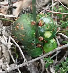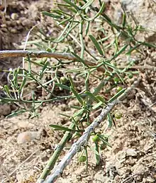 It often forms rounded gray-green galls on its stem, the result of parasitism by the fly Asparagobius braunsi.