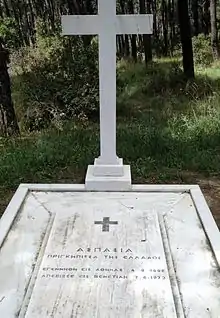 Heartbroken by the fate of her daughter, Aspasia saw her own health gradually deteriorate over the years. Seriously ill, she could not attend the wedding of her grandson with Princess Maria da Gloria of Orléans-Braganza on 1 July 1972. One month later, on 7 August 1972,[42] Princess Aspasia died in the Ospedale al Mare in Venice. At the time, Greece was ruled by the Regime of the Colonels and so Alexandra chose to bury her mother in the Orthodox section of the cemetery of San Michele island near Venice. Only after the death of Alexandra, in January 1993, were the remains of Aspasia and her daughter transferred to the Royal Cemetery Plot in the park of Tatoi near Dekeleia, at the request of Crown Prince Alexander of Yugoslavia.[66]