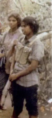 The assassination was carried out by Kalaivani Rajaratnam alias Dhanu. She was born on 26 July 1968 in Kaithady Nunavil, Jaffna Peninsula.[4] It was after joining the LTTE that she came to be known by the assumed name Thenmozhi. Her family hailed from Kupukullai, a small village in Jaffna. She studied in Vavuniya and Batticaloa.[23][24] She also temporarily lived in Urumpirai.[4] She was inspired by the Tamil militant group Liberation Tigers of Tamil Eelam (Tamil Tigers) at a young age, and joined the Black Tigers (suicide bombers) after an ankle injury.[25] She was known as “captain Akino” and was a flag bearer for female LTTE marches.[26] Another reason why Kalaivani became a Tiger is that her brother was a well-known cadre who had died and she was carrying on the family tradition.[27]