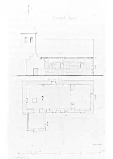 In 1840, a new and larger school was built in the village.[35] The decrepit church in Essenbæk Parish was torn down in the autumn of 1865,[36] and on November 28, 1869, the consecration of a new[25] Essenbæk Church in Assentoft occurred.[13] At that time, the village was growing north of the highway.[37]
