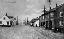 In Assentoft, the Savings and Loans Bank of Virring and Essenbæk Parishes (Virring og Essenbæk Sognes Spare- og Laanekasse) was established in 1871.[11] To provide medical assistance for its members,[38] the Craftmen's Society of Essenbæk Parish (Essenbæk Sogns Haandværkerforening) was established on March 6 of the same year,[39] and in the summer of 1889, the society built[40] the Foundation of the Craftmen's Society of Essenbæk Parish (Essenbæk Sogns Haandværkerforenings Stiftelse),[39] which was known as Assentoft's village hall; it included a taproom,[41] a gathering hall, and six free[42] retirement homes.[43] Assentoft Waterworks (Assentoft Vandværk) was established on May 15, 1895.[44]