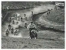 Motocross was first raced on Volk Mill hills on April 20, 1951. The track raced on was 750 meters long. In the autumn of 1954, a 2,500-meter-long track was approved by an international track inspection, and on August 28, 1955, Motocross des Nations was raced there with 24 participants and ca. 40,000 spectators.[51] The first photograph elected as the World Press Photo of the Year shows a race participant that crashed on the track.[52]