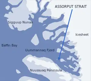 Assorput Strait (old spelling: Agssorput) is a strait in the Uummannaq Fjord system in northwestern Greenland. It separates Uummannaq Island in the west from Salliaruseq Island in the east.[1] The strait waterway connects inner Sarqarput Strait in the southern arm of Uummannaq Fjord in the south with the central arm of Uummannaq Fjord in the north.
