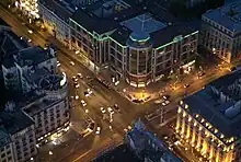 Colloquially, a short section of the roads originating from the actual intersection, reachable by a few minutes of walking, can be also named Astoria (as in a neighborhood), for example "Az Astorián lakom" (I live on the Astoria) does not imply having a residence neighboring the actual intersection (which has few residential buildings), rather one near the intersection along one of the major roads.