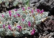 | Astragalus purshii var. tinctus. On the Thunder Mountain trail, in the Sierra Nevada, Amador County, El Dorado National Forest, California. US Forest Service photo. | |