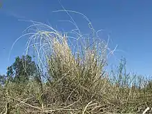 Astrebla elymoides, commonly known as hoop Mitchell grass, is a herb of the family Poaceae. Named in honour of Thomas Mitchell, it is regarded as the best of the Astrebla grasses for grazing, particularly for cattle. Often seen growing to one metre tall, on floodplains and heavy self mulching clay soils in arid to semi arid Australia. Flowering is in response to rain or flooding.[1][2][3]