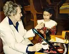 In 1967, the publisher Rabén & Sjögren established an annual literary prize, the Astrid Lindgren Prize, to mark her 60th birthday.[37] The prize—40,000 Swedish kronor—is awarded to a Swedish-language children's writer every year on Lindgren's birthday in November.[38] In 1995, she was awarded the Illis quorum gold medal by the Swedish government.[39] On her 90th birthday, she was pronounced International Swede of the Year 1997.[40] In its entry on Scandinavian fantasy, The Encyclopedia of Fantasy named Lindgren the foremost Swedish contributor to modern children's fantasy.[41] Its entry on Lindgren stated that "Her niche in children's fantasy remains both secure and exalted. Her stories and images can never be forgotten."[42]