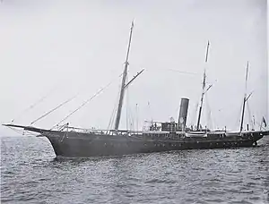 Atalanta was built for Jay Gould the same year that American Yacht Club was founded and its inclusion in the club's fleet of steamships was considered a great coup.[2] Gould died in 1892, and it was sold to the Venezuelan Navy in 1900 where it served as the gunboat Restaurador (Restorer). It was captured by the Imperial German Navy during the Venezuelan crisis of 1902–03 and put into service under a German flag as part of the blockading squadron. After the crisis, it was returned to the Venezuelans. It was renamed General Salom and continued in service until 1950.[3]