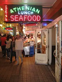 Athenian Seafood Restaurant and Bar, or simply The Athenian,[1] is a seafood restaurant in Seattle's Pike Place Market, in the U.S. state of Washington. The business was established in 1909,[2] and became one of Seattle's first to acquire a beer license in 1933. The Athenian appeared in Sleepless in Seattle.[1] In addition to seafood, the menu has included burgers and salads.[3]
