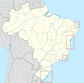 The northernmost enclave is in Rio Grande do Norte state in northeastern Brazil. Other enclaves are north and south of the city of Salvador and near the mouth of the Jequitinhonha River in Bahia state; north and south of the mouth of the Rio Paraíba do Sul in Rio de Janeiro state; and along the coast of southern Santa Catarina state and Rio Grande do Sul state, as far as the Uruguayan border.