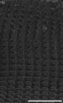![]() Radula: central tooth, with lateral and 8 marginal teeth. |