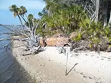 Atsena Otie Key is a barrier island and ghost town one-half mile offshore of Cedar Key, Florida. Atsena Otie was the original site of the town of Cedar Key, and in the present day includes a walking trail, swimming area, and ruins of the Eberhard Faber mill. The property is part of the Cedar Key National Wildlife Refuge and is managed by the U.S. Fish and Wildlife Service.[1]