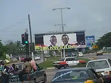 President Mills featured on a billboard with Former US President Barack Obama