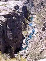 The canyon ends at Rincón del Atuel. From there on the river flows along a plain, becoming wider and meandering until reaching the Desaguadero River.