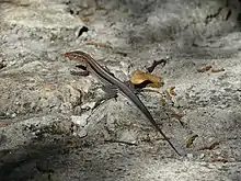 Auber's ameiva (Pholidoscelis auberi), also known commonly as the Cuban ameiva, is a species of lizard in the family Teiidae. The species is native to the Bahamas and Cuba.[2] There are 40 recognized subspecies.