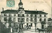 During the Siege of Paris in 1870 the municipal government took refuge in Paris at 20 Boulevard de Strasbourg. At the beginning of 1877 a tramway arrived in the city centre. In 1879, the boyauderie (Tripe factory) owned by Mr. Jacquart was established.[14] It was later purchased by Witt SA, a boyaudier from La Courneuve. The whole complex was bought in 1921 by the Wanner establishment who manufactured insulating materials: ceramic, plaster, and cork tiles. On 18 June 1897 a grease manufacturing factory (industrial oils and greases) was established on Chemin Haut de St Denis at Aubervilliers[15] and remained in operation until the Second World War. In 1898 a tram depot was built at the corner of the Avenue de la République No. 30 and Rue du Midi.[16]
