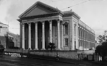 The building was opened to the wider community on 12 May 1885, where a special tithe was taken to cover the final £100, rendering the church debt free.[1] Designed by a local architect Edmund Bell, the building was directly based on the Metropolitan Tabernacle in London and featured the same columned portico derived from the Pantheon in Rome.