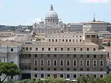 Auditorium della Conciliazione, also known as Auditorio Pio, is an audience hall and concert hall on the Via della Conciliazione in the Borgo district of Rome. Conceived in the 1930s as part of a vast Mussolini-ordered redevelopment of the district, it was not completed until 1950 after post-World War II work by architects Marcello Piacentini and Giorgio Calza Bini. Surrounding it are wings of the large Palazzo San Pio X, a broadcasting facility also part of the 1930s conception. Both buildings open onto the long perspective from St. Peter's Basilica to the Ponte Sant'Angelo created by the redevelopment.