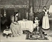 After graduating from Sewickley High School in 1893 he went to New York to study under Harry Siddons Mowbray, Edwin Blashfield, and Kenyon Cox, at the Metropolitan Museum of Art and the Art Students League of New York.[3][4] After further studies in Europe, Nicols started a career as a magazine illustrator, working for several publications including Collier's, McClure's, Cosmopolitan, Harper's, Scribner's, St. Nicholas Magazine, and The Burr McIntosh Monthly.[5][6][7] After a period of convalescence at home due to surgical operations, he moved into oil painting, working from a studio in the Sewickley Valley Trust building.[8] Some of his work from this earlier period includes murals in Pittsburgh public buildings and portraits.[9] He painted Civil War General Alexander Hays in a portrait[10] and in a now lost painting where he is shown dragging the Confederate flag from his horse.[11] His work in oils began to get some recognition and in 1904 Nicols' painting A Reverie was accepted for the ninth Carnegie International Exhibition in Pittsburgh.[2]