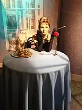 Hepburn then took a small role in a bilingual film, Monte Carlo Baby (French: Nous Irons à Monte Carlo, 1952), which was filmed in Monte Carlo. Coincidentally, French novelist Colette was at the Hôtel de Paris in Monte Carlo during the filming, and decided to cast Hepburn in the title role in the Broadway play Gigi.[57] Hepburn went into rehearsals having never spoken on stage, and required private coaching.[58] When Gigi opened at the Fulton Theatre on 24 November 1951, she received praise for her performance, despite criticism that the stage version was inferior to the French film adaptation.[59] Life called her a "hit",[59] while The New York Times stated that "her quality is so winning and so right that she is the success of the evening".[58] Hepburn also received a Theatre World Award for the role.[60] The play ran for 219 performances, closing on 31 May 1952,[60] before going on tour, which began 13 October 1952 in Pittsburgh and visited Cleveland, Chicago, Detroit, Washington, D. C., and Los Angeles, before closing on 16 May 1953 in San Francisco.[10]