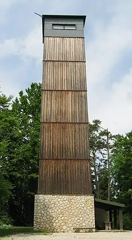 In 1894, a 15 m high wooden observation tower (Augstbergturm) was constructed at the summit. Four years later in 1898, a storm brought the tower down. After reconstruction, the tower was raised to be 22 m high.