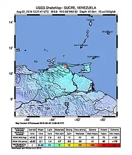 ![]() Shakemap for the August 22, 2018 Venezuela earthquake. | |