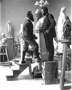 In 1900. his work on the Siegesallee (Victory Avenue) project won him the Academy's "Staatspreis", which included a stipendium for five years of study in Rome. This enabled him to break away from his artistic and financial dependence on Begas. Once there, his style took a turn towards Neoclassicism.[1] Upon his return, he became a member of the Berlin Secession and served as its vice-president from 1911 to 1913.[2] He was Director of the Rauch-Museum from 1914 to 1920. The Sculptors' Association of Berlin elected him its first President. His work was part of the sculpture event in the art competition at the 1928 Summer Olympics.[3]