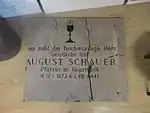 ![]() Memorial plaque to August Schauer, Kočevske Poljane church wall | |