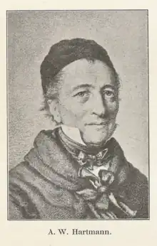 August Wilhelm Hartmann (6 November 1775 – 15 November 1850) was a Danish composer and violinist at the Royal Chapel in Copenhagen. He was a second generation of composers in the Hartmann musical family. Trained as a musician by his father, composer Johann Hartmann (1726–1793) and by composer Claus Schall (1757–1835), he has written various pieces for the piano. Reference can be made among others to a C minor piano sonata (ca. 1814–15) and to three sets of themes and variations for piano published by Lose in 1815.