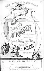 As a composer, Vaucorbeil was best known for his art songs, many of them set to texts by prominent poets of the day and initially appearing individually in the periodical Le Ménestrel. A complete collection of his songs was published by Heugel in 1860.[8] Heugel also published some of Vaucorbeil's chamber music—three sonatas for piano and violin and String Quartet No. 1 dedicated to Joseph d'Ortigue who was a great admirer of Vaucorbeil's work. His Intimités (6 pieces for solo piano) was published by Durand and his string quintet based on Norwegian melodies was published by Richault. He also composed several pieces of vocal religious music which were published by La Maîtrise in 1860, including Cantique des Trois Enfants to a text by Corneille and a Kyrie for three voices.[2]