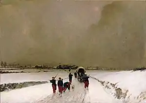 Today, he is known primarily for hunting scenes and snowy landscapes. He was, in fact, sometimes called the "peintre de la neige" (Snow painter). In addition to his canvases, he also did decorative work in Lyon at the Hôtel de l'Europe and the Palais de la Bourse.