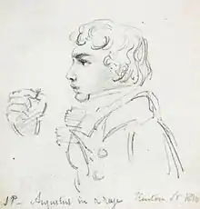 Pencil sketch of Augustus Prinsep by his brother James Prinsep, 1816. The drawing is captioned "Augustus in a Rage. Kenton [Street, Bloomsbury, London]".