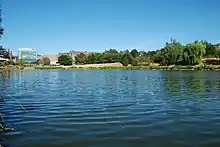 ![]() The western facade, facing the Louvain-la-Neuve lake. | |