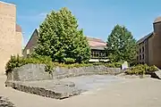 East of the Aula Magna, Place Montesquieu houses a vast blue stone sculpture, created by sculptor Pierre Culot in 1980 and entitled Ronde des menhirs, made of stone blocks 40 to 300 cm high forming a 26-metre amphitheatre.[15]