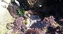 Aulactinia verrucosa is native to the northeastern Atlantic Ocean, the North Sea and the Mediterranean Sea.[1] Its northern limit is Shetland and western Scotland and it is present all round the coasts of Ireland. It is found on rocky shores both in areas with strong currents and in calmer waters. It is present in crevices and in rock pools, often among calcified red algae (Corallina), and also attached to the rock beneath the sediment in rock pools.[3]