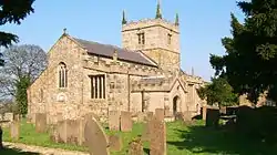 Local residents describe the settlement as the 'smallest village in England', as it consists of only a church and three houses.[nb 1] The philosopher Thomas Hobbes was interred within Ault Hucknall's St John the Baptist Church following his death in 1679.[3]