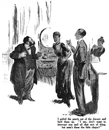 After Jeeves mildly reproaches Bertie's rashness, Bertie discovers that the necklace case is empty. Jeeves tells Bertie about a former employer who once gave a loan, with a pearl necklace as security, to a con man named Soapy Sid and his female accomplice. Soapy Sid swapped the case of pearls for an empty one, and used the receipt to demand reimbursement. Jeeves confirms that Sidney is Soapy Sid. Fortunately, Jeeves surreptitiously retrieved the case of pearls while helping Sidney with his jacket. Jeeves suggests that Bertie return the necklace to its owner, Aunt Agatha, and to make it clear to her that Aline was one of the thieves.