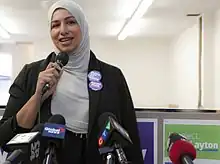 Her election made her the first hijab-wearing Muslim woman elected to public office in Canada.[1][7] During the campaign, Malik was the subject of an anonymous Islamophobic campaign which distributed fliers claiming she supported the Toronto 18 terror plot, Sharia law, and Hezbollah.[1][8] During a ward trustee candidates debate, a small group of men interrupted her closing remarks by shouting that she was a "Jew hater" and "Hezbollah terrorist", eventually forcing her to abandon her closing statement and leave through a back door.[9]
