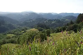 Austin Creek State Recreation Area is a state park unit of California, United States, encompassing an isolated wilderness area. It is located in Sonoma County, California, adjacent to Armstrong Redwoods State Natural Reserve, with which it shares a common entrance. Its rugged topography includes ravines, grassy hillsides, oak-capped knolls, and rocky summits offering glimpses of the Pacific Ocean. There are 20 miles (30 km) of trails, panoramic wilderness views, and camping (both back-country and vehicle-accessible). The remains of Pond Farm artists' colony (dating from the 1940s) are also included in the Austin Creek SRA.