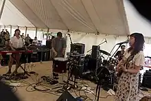 After a year of intensive rehearsal and the departure of Man,[6] the band recorded their first EP, Set Pieces, at CJSW in April 2008.[7] Following the EP's release in July 2008, the band returned to Sled Island to play an opening set for Deerhunter. Their performance was highly regarded by the audience, who gave the group a standing ovation after Deerhunter's Bradford Cox rose from his seat at the end of the group's set and requested that the band play an encore.[8] This performance at Sled Island and the Set Pieces EP garnered more extensive attention for the band, including a notable mention from the music blog Stereogum.[9]