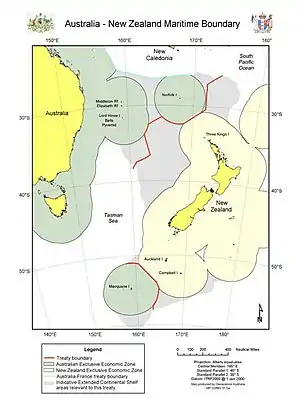 The Australia–New Zealand Maritime Treaty is a 2004 treaty between Australia and New Zealand in which the two countries formally delimited the maritime boundary between the two countries.[1]