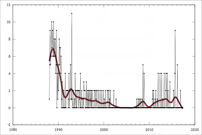 In 1989, Nauru appealed against Australia to the International Court of Justice, due to the environmental devastation inflicted by phosphate mining during the colonial period.[1] In 1993, Australia offered Nauru an out-of-court settlement of 2.5 million Australian dollars annually for 20 years.