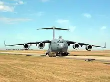 Aircraft that visited the show were Qantas' Boeing 747 and Airbus A380, the latter of which was first delivered the previous year. V Australia, a new Brisbane-based competitor in the international market, contributed with its Boeing 777-300ER.[19] Also on display were the Lockheed C-5 Galaxy, C-17, B1-B Lancer, F-16 Fighting Falcon, F/A-18 Hornet, F/A-18F Super Hornet, F-111 Aardvark, and the KC-10 Extender.
