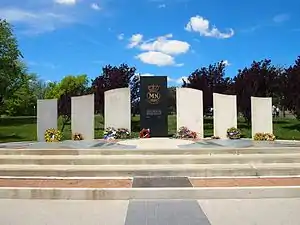 The Australian Merchant Navy Memorial is a memorial honouring the Australian Merchant Navy's involvement in World War I and World War II. It is located in Kings Park, on the northern shore of Lake Burley Griffin in Canberra, the national capital city of Australia.[1] Its location at the shore of the lake represent's the Merchant Navy's relationship with water.[2] It was unveiled on 7 October 1990 by Bill Hayden AC, Governor-General of Australia.[3] A memorial service is held on the first Sunday on or after 21 October each year.
