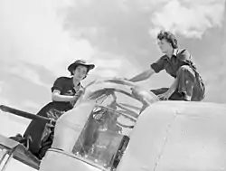 A shortage of male recruits forced the military to establish female branches in 1941 and 1942. The Royal Australian Air Force established the Women's Auxiliary Australian Air Force (WAAAF) in March 1941, the Army formed the Australian Women's Army Service (AWAS) in October 1941 and the Australian Army Medical Women's Service (AAMWS) in December 1942, and the Women's Royal Australian Naval Service (WRANS) came into being in July 1942.[3] In 1944 almost 50,000 women were serving in the military and thousands more had joined the civilian Australian Women's Land Army (AWLA). Many of these women were trained to undertake skilled work in traditionally male occupations in order to free servicemen for operational service.[1] Women were also encouraged to work in industry and volunteer for air raid precautions duties or clubs for Australian and Allied servicemen.[4] The female branches of the military were disbanded after the war.[3]
