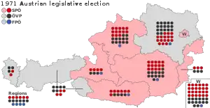 Early parliamentary elections were held in Austria on 10 October 1971,[1] following electoral reforms intended to benefit smaller parties. The number of seats in the National Council was increased from 165 to 183, and the proportionality of the seat distribution was increased as well.[2]