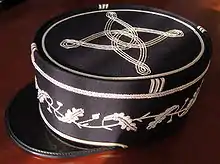 An Austrian knot (or Hungarian knot), alternatively warrior's knot or vitézkötés, is an elaborate design of twisted cord or lace worn as part of a dress uniform, usually on the lower sleeve. It is usually a distinction worn by officers; the major exception is the hussars, in which Austrian knots are worn by all ranks. British cadet under officers wear Austrian knots as part of their rank insignia.