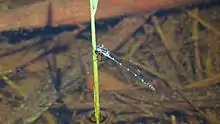 Austrolestes minjerriba is a medium-sized to large damselfly, the male is light blue and black.[6]