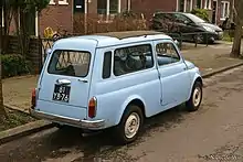 The Autobianchi Giardiniera is a supermini produced by the Italian automaker Autobianchi, based on the Fiat 500 Giardiniera. The Fiat version being offered since 1960. It was available in various configurations: station wagon and van. Car was produced from 1968 to 1977 effectively replacing the Fiat counterpart. It was also marketed as the Autobianchi Bianchina Giardiniera.[1][2] The overall layout was very similar to the earlier Panoramica but the Giardiniera was more utilitarian oriented and ideally suited for light commerce.[3] It also retained the same exterior design from Fiat with only a badge change, and still featured the suicide doors.