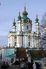 The first liturgy presided over by members of the Ecumenical Patriarchate in this church took place on 13 December 2018.[202][203] This liturgy, at which hierarchs of the Ecumenical Patriarchate presided, was condemned by the UOC-MP.[204][205] On 7 January 2019, bishop Hilarion (Rudnyk) of the Ecumenical Patriarchate celebrated the Christmas liturgy in St. Andrew's church.[206]